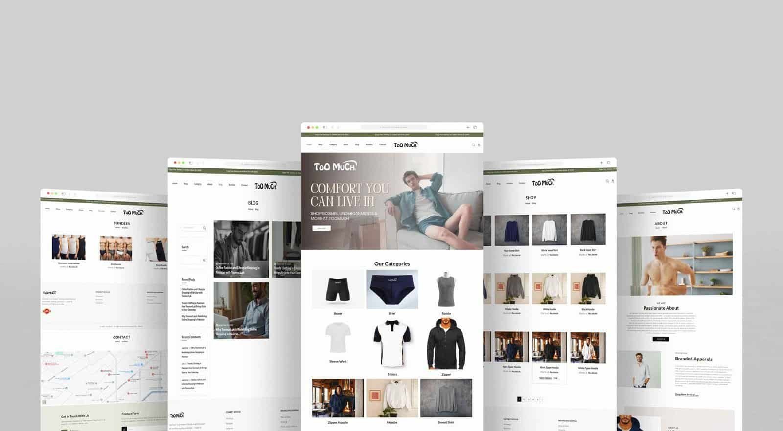 This case study focuses on the digital launch of Too Much, a men's apparel brand specializing in underwear and general menswear. The project involved the comprehensive development of an e-commerce platform using WooCommerce on WordPress, designed to handle a diverse product catalog ranging from intimate wear to casual clothing. Simultaneously, an aggressive and targeted Social Media Marketing (SMM) campaign was implemented to build brand personality, drive high-intent traffic, and establish Too Much as a fresh and bold choice in the competitive men's fashion market.